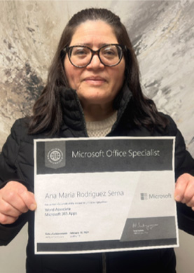 Ana Rodriguez (Peru) came to Workforce Advantage and inquired about enrolling in our Microsoft Office Specialist program. Ana tried to do many things since she migrated to America. Ana lost her last job, where she had enjoyed economic stability for her family. Desperate to start a new career, she finally came to our school; she was happy and excited to enroll and start in the MOS Class and simultaneously receive ESL classes to improve her language skills. She successfully gained her MOS Certification and advanced an English proficiency level. We helped her write her resume and use one of our partners to schedule a job interview. She was hired at Transded Mobility and is getting paid more than $16 per hour. She is happy and fulfilled and loves her career.